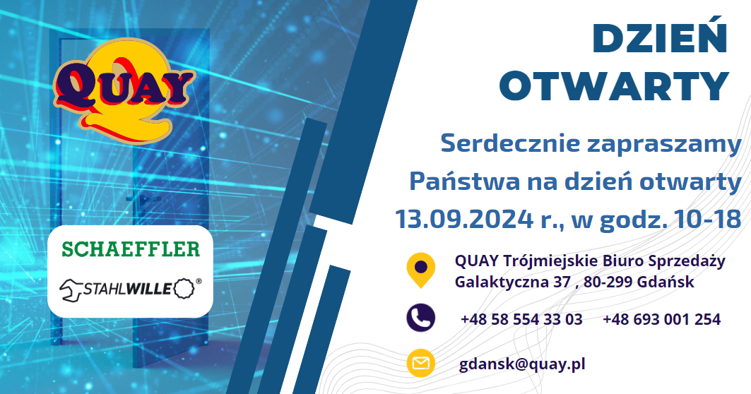 Na wydarzeniu będą obecni przedstawiciele firm Stahlwille oraz Schaeffler, którzy zaprezentują najnowsze rozwiązania i produkty. Ponadto, nasi eksperci z działu technicznego QUAY przybliżą zagadnienia związane z szeroko rozumianym przenoszeniem napędu, pneumatyką i automatyzacją.