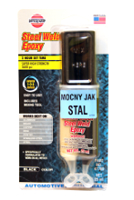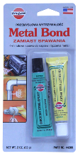 KLEJ METAL BOND - 57 g Szybkowiążący epoksyd do stali, jest najmocniejszym dostępnym epoksydem stalowym. Ma wytrzymałość przemysłową i nadaje się doskonale do: łączenia metalu z metalem, naprawy uszkodzeń i wypełnianiu ubytków w metalu, drewnie i murach. Epoksyd twardnieje na sztywno, tworząc metaliczna masę (jak stal) i może być wiercony, gwintowany, szlifowany, obrabiany pilnikiem itp. Znajduje zastosowanie w warsztacie, zakładzie przemysłowym, przy naprawie elementów samochodów oraz wielu innych urządzeń. |